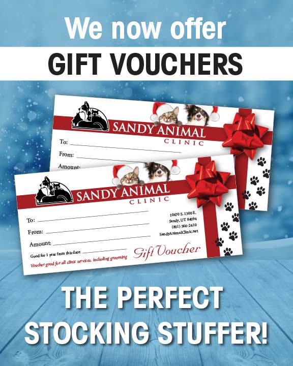 Gift Vouchers posted: Wed Dec 02 19:50:21 EST 2015 by: Sandy Animal Clinic Tags: "Clinic Specials" "News" Give the GIFT of HEALTH and LOVE. Perfect for your pets, family and friends. Come in today to purchase your gift voucher.